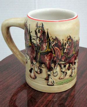 This 1980 Budweiser Mug was the first in a series of Budweiser steins and features the world famous Clydesdale team drawing a red wagon. Made by Ceramarte, Brazil, this is a must have for collectors. Perfect condition with no chips or cracks. $45.00