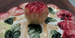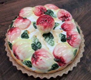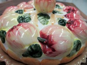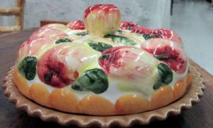 Colorful ceramic apple pie keep with lid is from the 1960s.